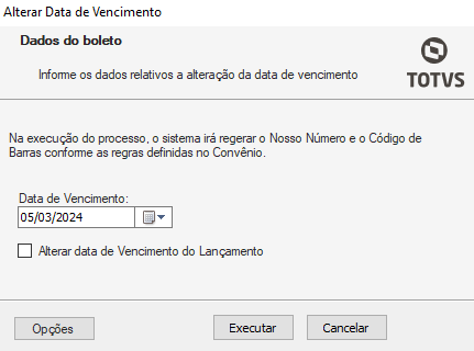 Alterar data de Vencimento do Lançamento: Habilite esse campo caso deseje alterar a data de vencimento do lançamento referente a esse boleto;