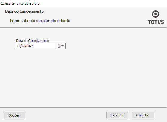 A data de cancelamento desse processo é preenchida automaticamente pelo sistema com a data do dia de realização