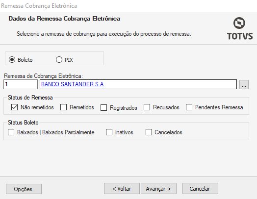Remessa de Cobrança Eletrônica: esse campo é preenchido automaticamente de acordo com os boletos selecionados;