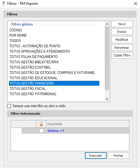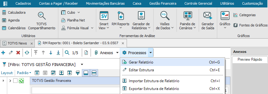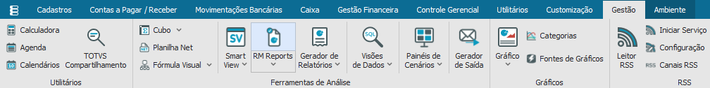 Por meio deste processo vamos gerar um relatório de registro através da guia Gestão – RM Reports