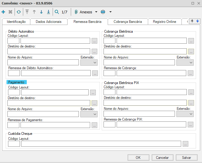 Remessa de Pagamento: selecione a remessa de pagamento e informe o banco e a filial;