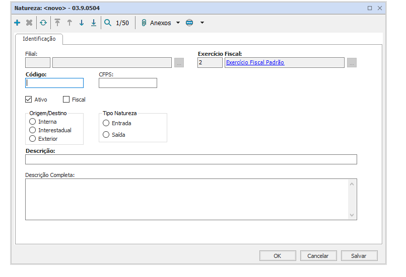 Tipo Natureza: informe de acordo com a natureza que está sendo cadastrada;