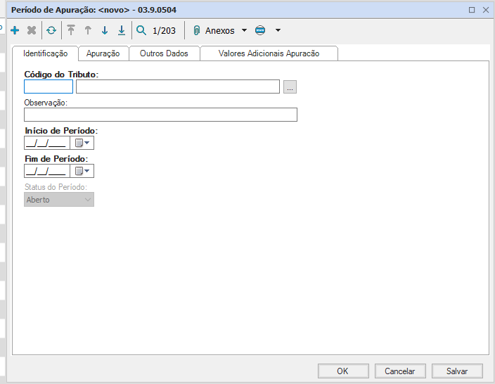 Observação: É necessário realizar a abertura e o fechamento de cada tributo