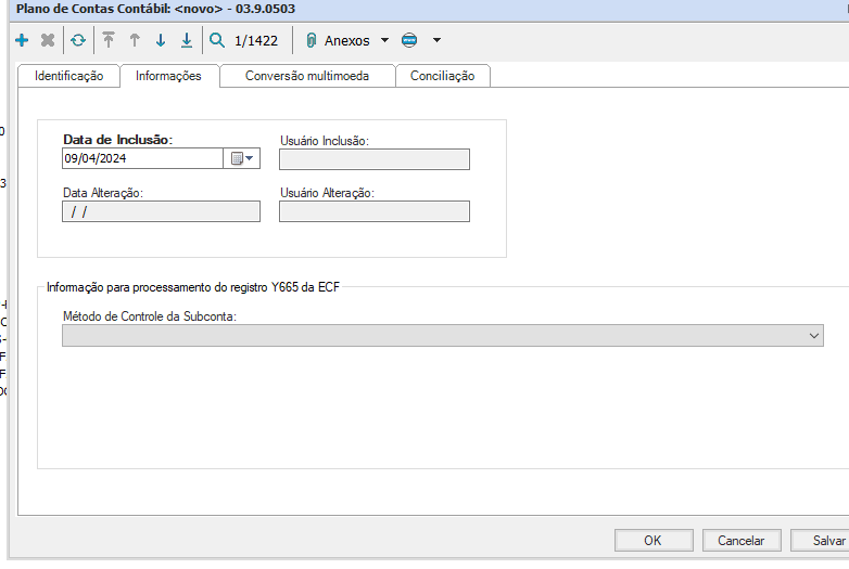 Usuário Alteração: campo preenchido pelo sistema após alguma alteração no plano de contas contábil;