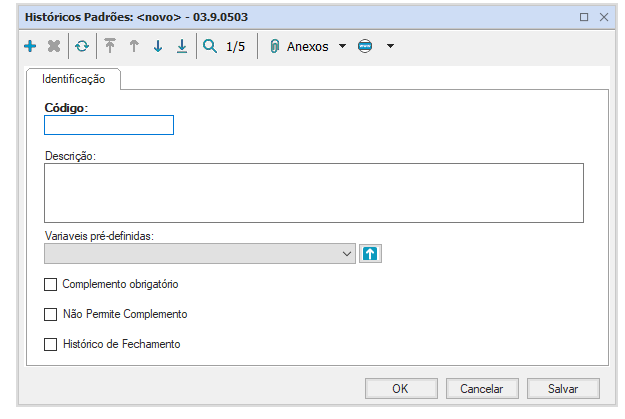 - Habilite os campos necessários de acordo com o histórico que está sendo criado.