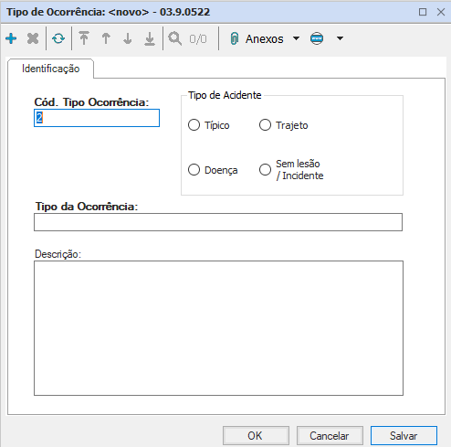 Tipo da ocorrência: informe o nome para esse tipo de ocorrência ( Ex. Acidente de trajeto);